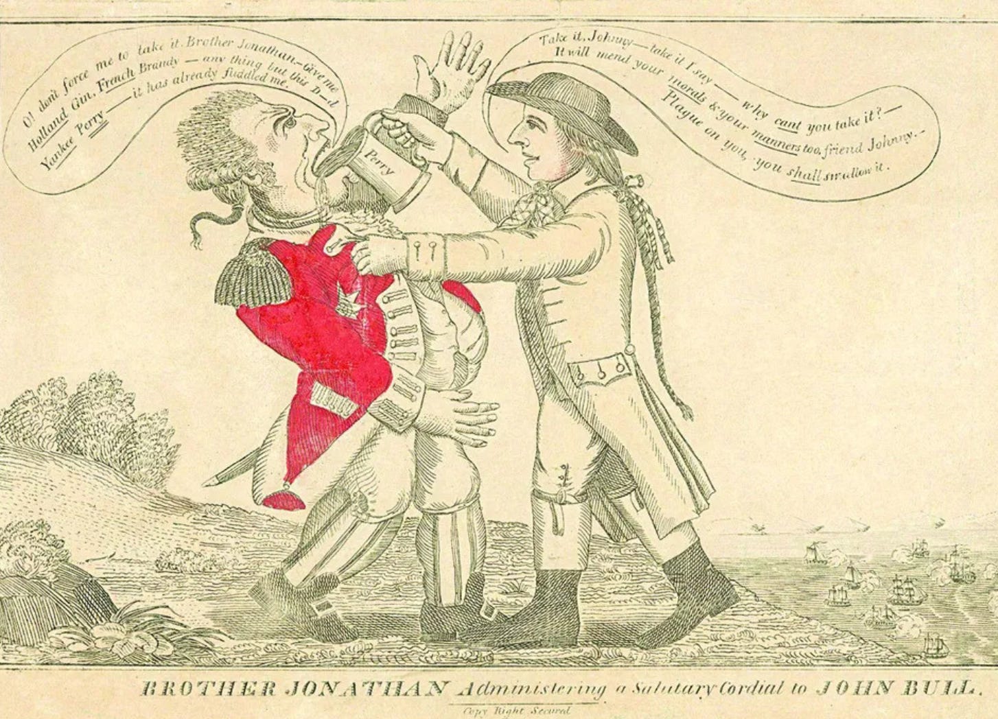 “Brother Jonathan” was named for the mythical Brother Jonathan, a personification of New England and all its Yankee ways – thrifty, resourceful, unpretentious, wily, dryly witty, fiercely protective of democracy at all levels and yet fundamentally self-reliant. Later depictions of Brother Jonathan by racist xenophobes like the Know Nothings tried to attach intolerance and white supremacy to him, and his top hat and too-tight waistcoat later migrated onto Uncle Sam, another mythical personification of America – this time, one that elevates power and military might over the egalitarian values of his predecessor.